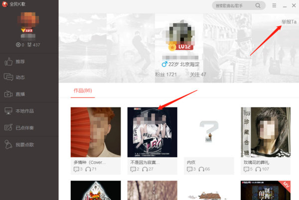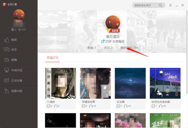 在全民k歌的好友主页中,我们首先可以聆听Ta的歌曲,说不定就找到了一个深藏民间的宝藏歌手。