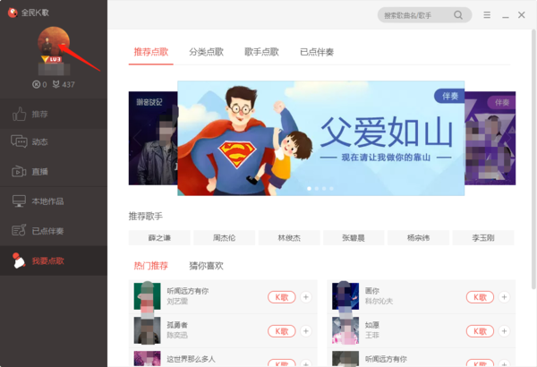 我们成功登录全民k歌之后,来到主界面,点击左上方自己头像,以进入个人主页。