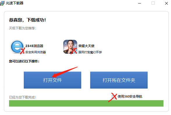 安装成功之后,同样地,大家还是先将可选项进行“去勾选”操作,再点击【打开文件】,此时腾讯桌面整理安装完成,我们可以开始使用。