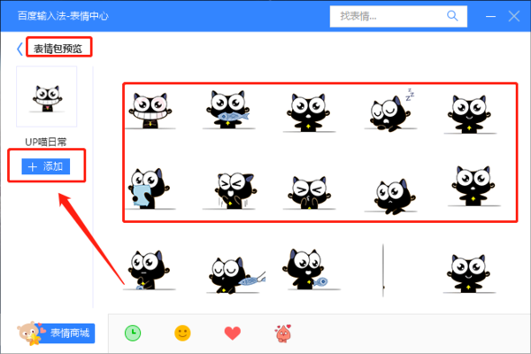 1.在百度输入法中,下载添加好的表情包,会自动在表情中心生成独立的选项,方便用户进行针对性查找。