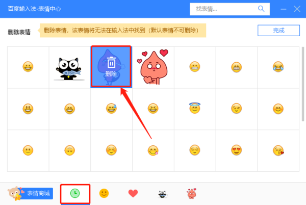 2.发送使用过的表情,会自动添加到常用表情菜单中,如果不想显示的话,可以用鼠标选中对应的表情,点击图片中出现的删除键,就能删除显示。不过要注意的是,系统默认的表情没有办法删除,只能删除自定义添加的表情。