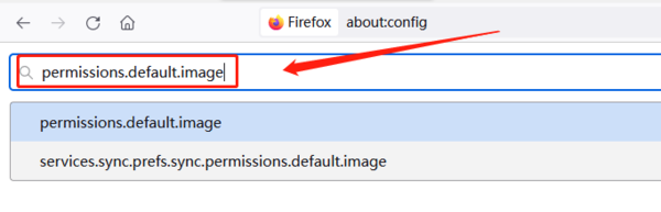 2、点击按钮之后,就会进入到火狐浏览器的配置界面,在上面的搜索框中输入“permissions.default.image”进行搜索。