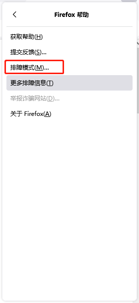 点击左上方的菜单,然后选择“帮助”,接着点击“排障模式”。