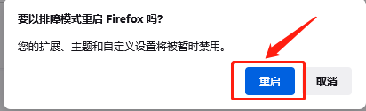 在弹出的弹框中单击“重启”等浏览器重启后再看一下问题是否被解决了。