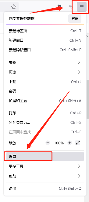 如果很时间没有清理缓存的话,就会有概率造成网页无法打开的状况,这时就需要对我们电脑中的火狐浏览器中的缓存进行清理。点击右上方的“菜单”,然后选择“设置”。