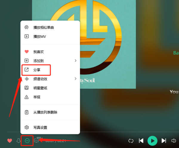 点击右上角三个点样式的选项,然后在下方选项中选择“分享到朋友圈”。这时候就可以把刚刚在电脑端听到的歌曲分享到微信朋友圈中了。
