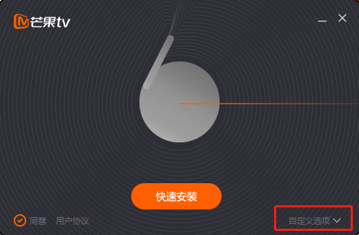 2、来到安装界面,暂且不要点“快速安装”,不然的话会直接将芒果TV安装到系统盘。因此我们需要先点击右下角的“自定义选项”。