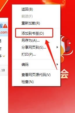 在浏览到某个我们会频繁使用的网站页面时,在网页任意位置右键,然后选择“添加到书签”,这样就可以把该网站保存下来,等到下一次使用时我们就直接可以从书签中找到了。