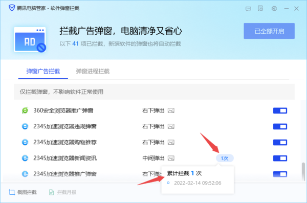 以上,就是小编为大家总结的关于腾讯电脑管家查看软件广告弹窗拦截日志以及具体开启软件广告弹窗拦截功能的方法介绍了。