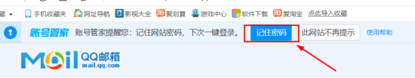 2、账号登录成功后,账号管家功能就会自动弹出提示来提醒我们是否需要记住该网站的账号和密码,点击“记住密码”按钮,就可以记住该网站的密码了。待下次访问这个网站时,我们就无需再次输入账号和密码了,账号管家功能将自动填写之前保存过的账号密码。直接点击“登录”键或按下键盘上的“回车”键就可以登录到网站当中了。
