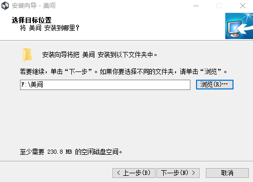 首先,当我们从官网等渠道将美间的安装包下载之后,打开安装包,进入美间的安装界面;来到安装界面后,直接点击“下一步”,切换到安装路径选择界面。