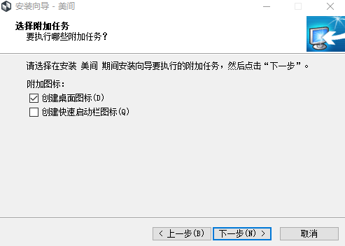 然后就是一些附加功能的选择,分别是创建桌面快捷方式(建议开启)和开机自动启动美间(不建议开启)。