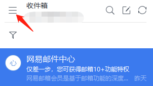 我们打开网易邮箱大师,调整至“邮件”模块,在模块的上方“收件箱”字样的左侧,有“三道杠”图标,点击后就可以看到网易邮箱大师中邮件的所有类别了。