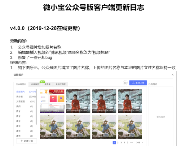 当我们打开微小宝的更新日志,会发现微小宝在2019年的时候更新的非常频繁,可见那时微小宝正处于“摸爬滚打”的阶段,官方在不断努力让它做的更好。接下来我们就看看它最近版本的更新吧!