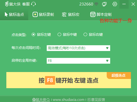 上述内容就是Windows鼠大侠连点器的些许优点了,如果是最近在找鼠标辅助软件的朋友,可以看看鼠大侠连点器。