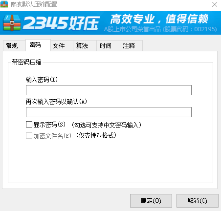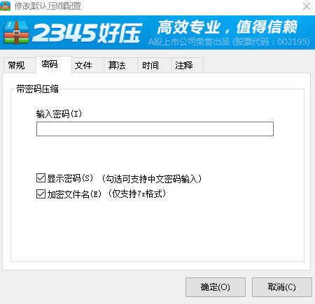 首先,小编很明确的告诉大家,在2345好压上当然是可以添加默认压缩密码的。对于一般的压缩格式,除了能添加数字和字符密码之外,还支持中文密码的输入,如果使用的7Z格式,还支持加密文件名。