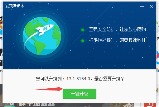 2、接着软件就会进行更新升级的检查,如果发现有可以更新升级的新版本的话,就会弹出相关的窗口,点击窗口上的【一键升级】按钮。