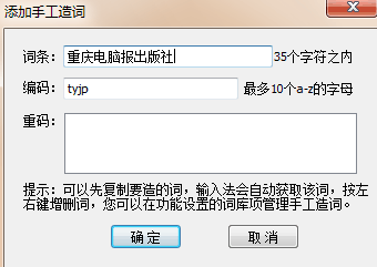 在我们需要使用手工造词功能时,按下键盘上的ctrl+F10,然后就会弹出造词页面,输入您想要输入的编码即可完成造词了。最后点击“确定”就完成了造词,?在下次输入时,直接输入以上的编码时,就会有之前输入的词语供我们选择。