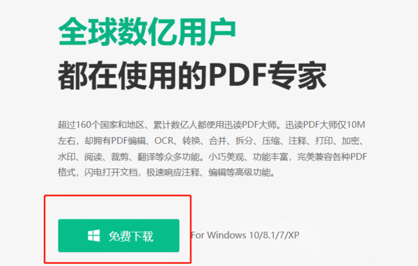 下载方式2:使用浏览器搜索迅读PDF大师官网,进入官网后点击“免费下载”,就可以开始下载安装程序了。
