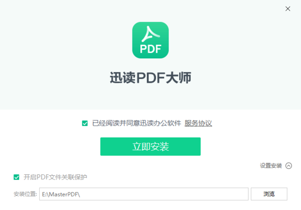 我们下载好迅读PDF大师的安装程序后双击打开,然后更改好安装路径后,按照步骤点击安装即可,安装完成后就可以开始使用了。