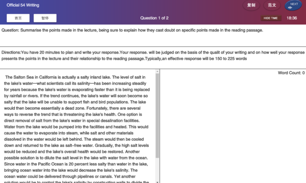 电脑版小站托福的写作界面有哪些内容