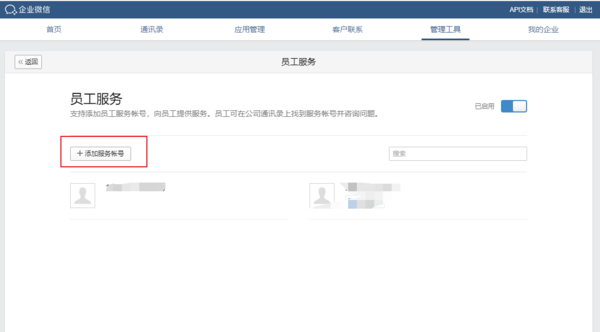 企业微信中的员工服务是企业相关管理人员所设置的员工服务类帐号的功能,这一功能是为相关负责人员可向企业中的员工提供服务,有任何工作中的问题的员工可以向该账号进行咨询。