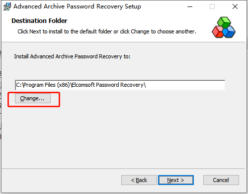 4、点击“change”可以更改软件安装路径,选择好合适的位置存储后,继续点击“next”。