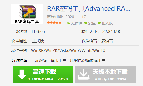 大家可以直接在在本站下载RAR密码工具安装包,这样大家无需再去查找资源,下载的安装包绿色安全,不用担心病毒的威胁。只需要点击页面上方的“查看详情”,进入到下载页面后,选择“高速下载”,就可以快速的下载安装程序了。