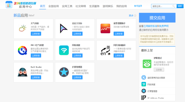 小编可以非常肯定的告诉大家,2345王牌浏览器是可以下载并添加插件的。在2345王牌浏览器的应用中心里就由很多插件可供大家下载使用,并且我们还可以通过类型来进行插件的查找,例如我们日常会用到的一些工具类、生活服务或是游戏娱乐类的插件,都可以在这里查找下载。