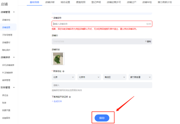 设置完成后,点击下方的“保存”键,新的店铺名称就更改完成了。