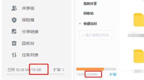 但在容量上,百度网盘有2T的存储空间,反观微云只有10GB。