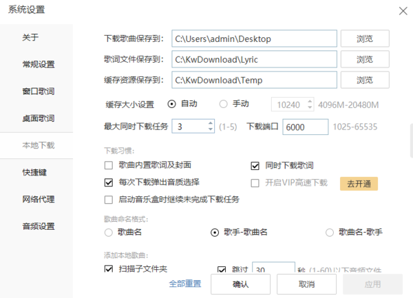 除了找到我们已经下载的音乐以外,我们还可以在这里进行下载设置,具体操作如下:还是在下载界面,点界面右上方“下载设置”,就可以对下载路径、同时下载音乐数量、下载速度等内容进行设置了,还是很个性化的。