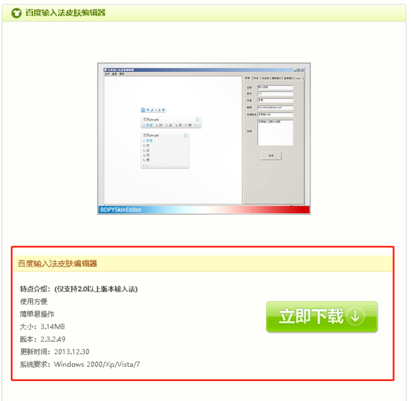如果想要自己制作上传皮肤也是可以的,首先用户需要下载一个百度输入法编辑器,同样是在皮肤中心上,在右侧的皮肤制作一栏中,点击“下载编辑器”按钮,就能跳转下载百度输入法皮肤编辑器。