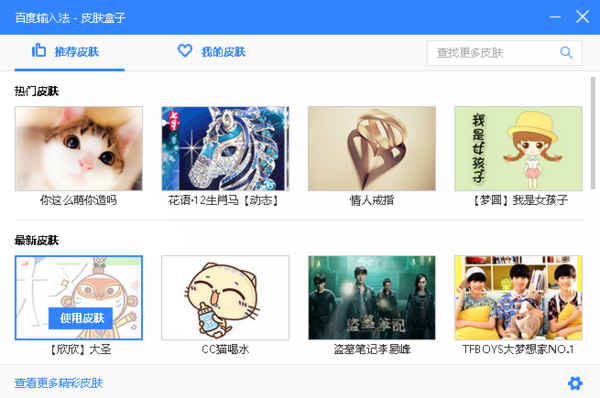 跳转到百度输入法皮肤盒子窗口后,下滑查找自己喜欢的皮肤式样,选中之后点击“使用皮肤”就能完成皮肤的修改。