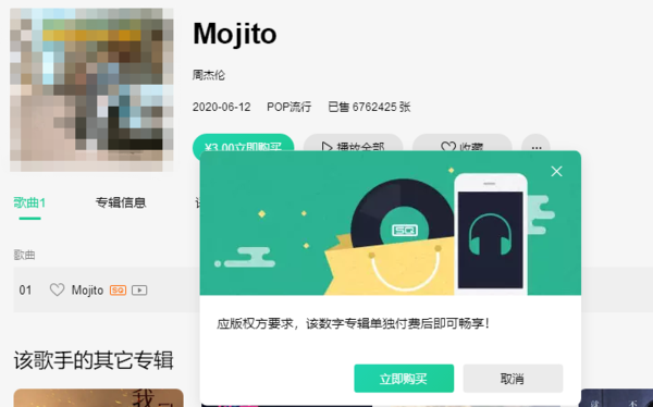 不难发现,很多歌手的新歌在发行之前就开始了“预售”活动,在专辑正式发行后,是可以通过搜索该歌手或歌曲名称进行歌曲或专辑的购买,让我们来看一看都有哪些热门歌曲是需要收费的吧。