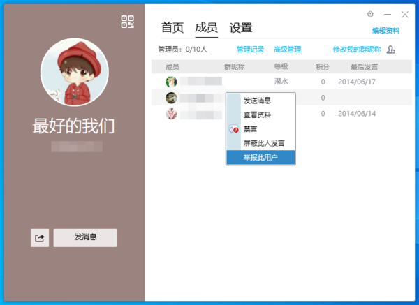 在QQ电脑版的群聊设置选项中,点击成员管理选项,在弹出的成员管理界面中,我们就可以对群聊中的某一个人设置【屏蔽此人发言】或者是【禁言】。