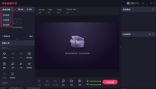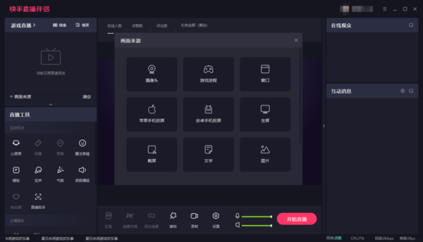 快手直播伴侣电脑版中的直播工具也内含丰富的功能,根据自己的需要点击即可添加,非常方便,最近有准备直播的小伙伴快下载使用吧。