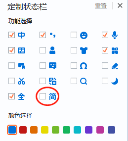 如果没有看到,那么先点击搜狗logo打开菜单栏,点“定制状态栏”,在功能选择中找到“简”,打勾,即可在状态栏中添加简繁体切换功能,之后就能自如切换。