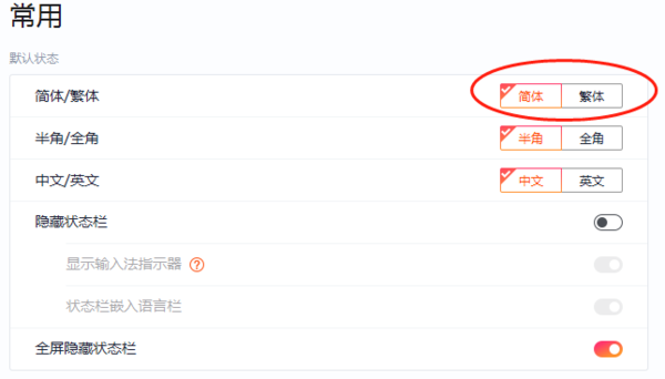 进入菜单栏,打开更多设置,映入眼帘的就是常用设置,第一项就是简繁体输入,在这里即可将繁体输入设为默认。