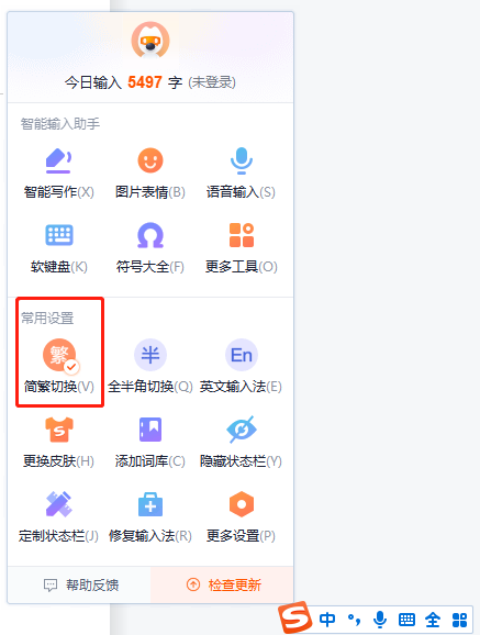 搜狗拼音输入法简繁体切换攻略二?在状态栏中切换