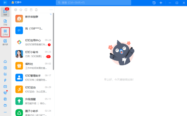 ①打开电脑上的钉钉软件,然后在左侧的导航菜单栏中,点击【工作台】图标。