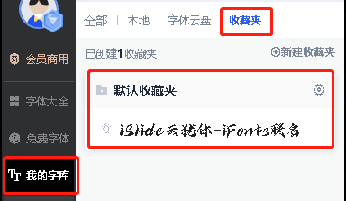在iFonts字体助手上找到想要使用的字体之后,点击对应选项右上角的五角星图标,就能选择将该字体收藏到默认收藏夹,或者是新建文件夹中。收藏完之后,用户可以在“我的字体”中,选择“收藏夹”一栏找到。