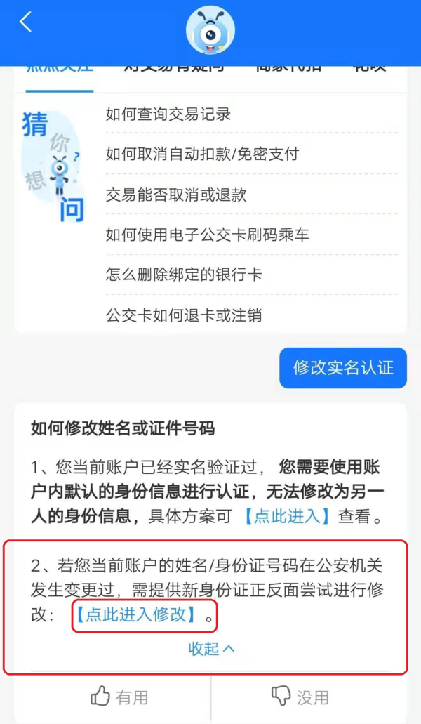 第七步,但是,如果你当前账户的姓名/身份证号码在公安机关发生变更过,需提供新身份证正反面尝试进行修改,点击客服回复中的第二项的【点击进入修改】按钮进行修改即可。