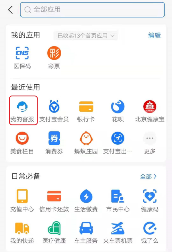 第二步,进入到全部应用的界面当中后,我们找到【我的客服】功能,并点击进入。