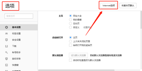第三步:在弹出来的选项页面中,点击右上侧的“Internet”选项。