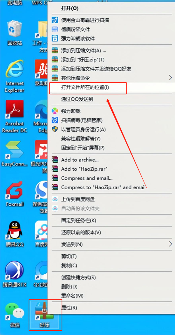 第一步:在电脑上选择2345好压软件,单击右键选择“打开文件所在的位置”。