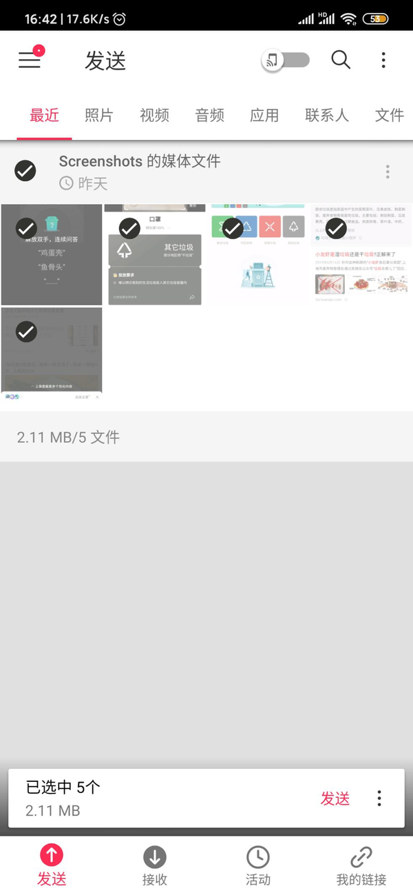 对于移动设备来说,Send?Anywhere的使用方法也非常简单,在发送界面选择需要上传的文件后点击发送即可完成上传,上传完毕后应用会提供6位数字密码、二维码以及分享链接,在另一个设备中输入密码或者扫描二维码即可完成文件的下载。