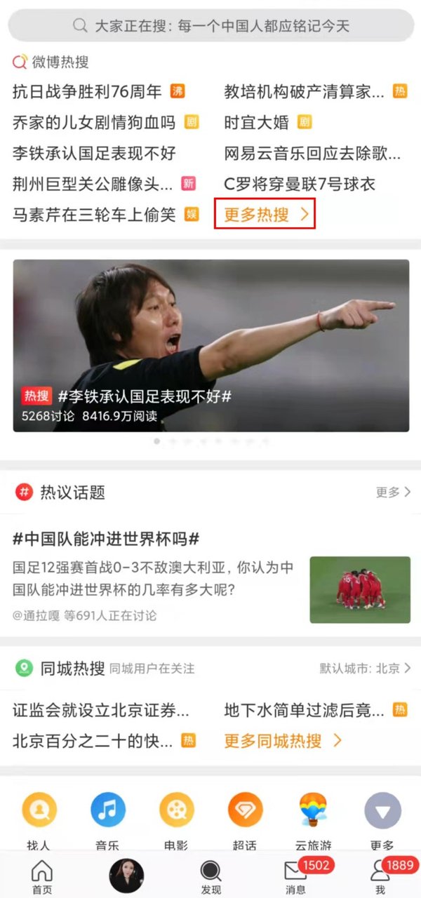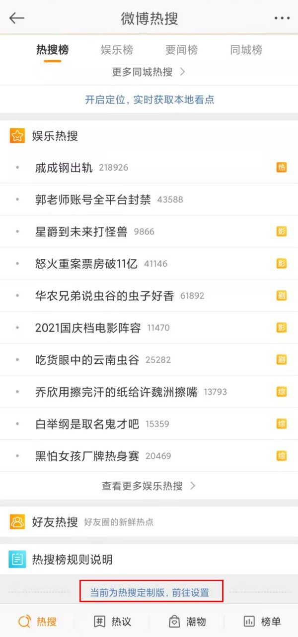 在热搜页面向下拉,点击前往热搜定制版设置。