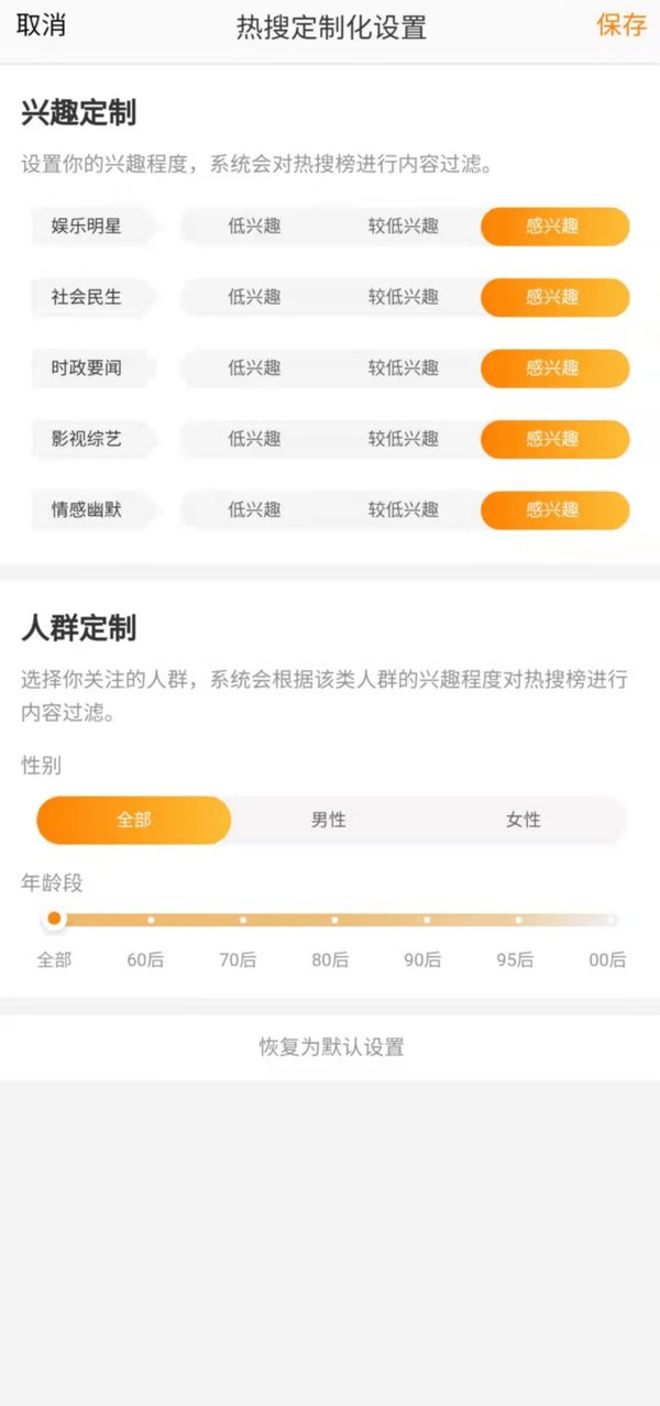 在热搜定制功能中,可以对热搜内容和关注人群进行定制化设置。