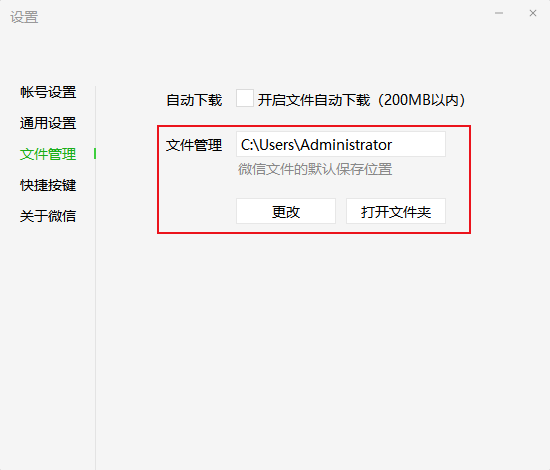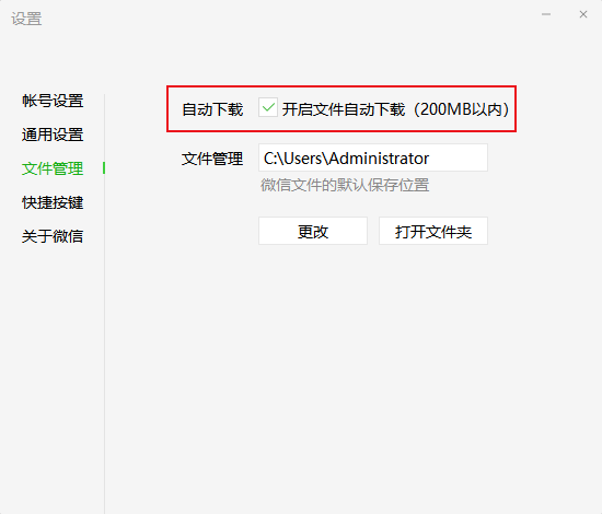以上就是电脑版微信关闭文件自动下载功能的方法,对于经常需要接收大文件的用户,也可以通过更改默认文件夹的方法来节省C盘空间。